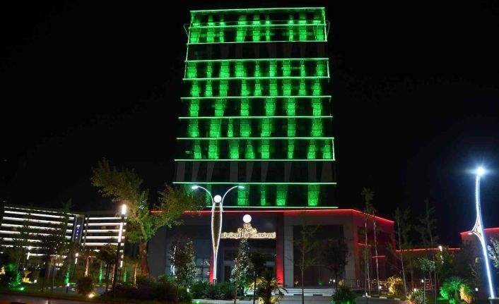 Manisa Büyükşehir Belediye binası çölyaklılar için yeşil renge büründü