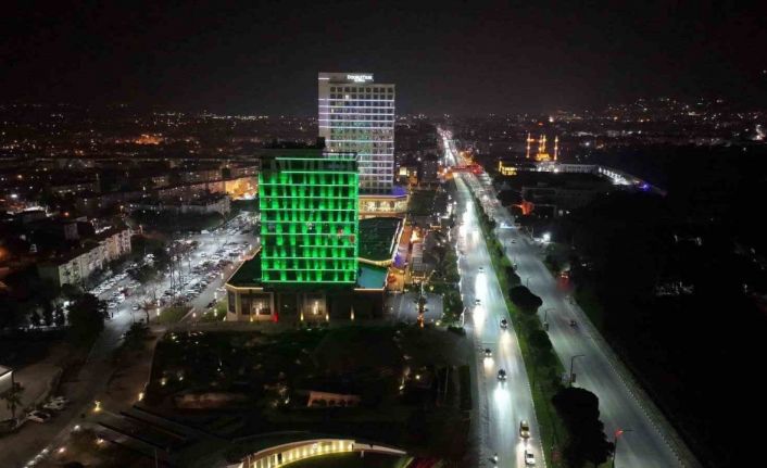 Manisa Büyükşehir Belediye hizmet binası, sağlık camiasının simgesi olan yeşil ve beyaz renklerle ışıklandırıldı. Gece saatlerinde şehri selamlayan bu özel aydınlatma, tüm sağlık personeline duyulan derin saygıyı ve dayanışma mesajını yansıttı.