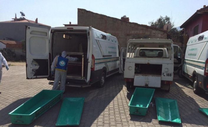 Manisa Büyükşehir Belediyesi, şehir genelinde dezenfeksiyon çalışmalarını aralıksız sürdürürken, hizmet birimlerinde de çalışma yaptı. 17 ilçede itfaiye müfrezelerinden itfaiye araçlarına, gasilhanelerden hizmet binalarına kadar tüm birimler, Sağlık İşleri Dairesi Başkanlığı ekiplerince dezenfekte edildi.