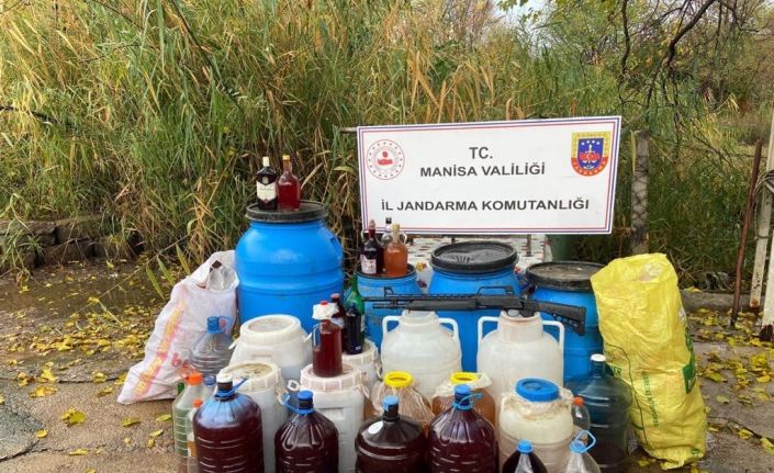 Manisa’nın Şehzadeler ilçesinde jandarma tarafından bir ev ve çiftliğe düzenlenen operasyonda bin litre sahte içki ele geçirildi.