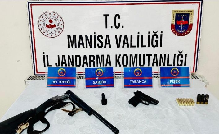 Manisa İl Jandarma Komutanlığına bağlı Salihli İlçe Jandarma Komutanlığı tarafından bir ikamete düzenlenen operasyonda, ruhsatsız tabanca ve tüfek ile fişek ele geçirildi.