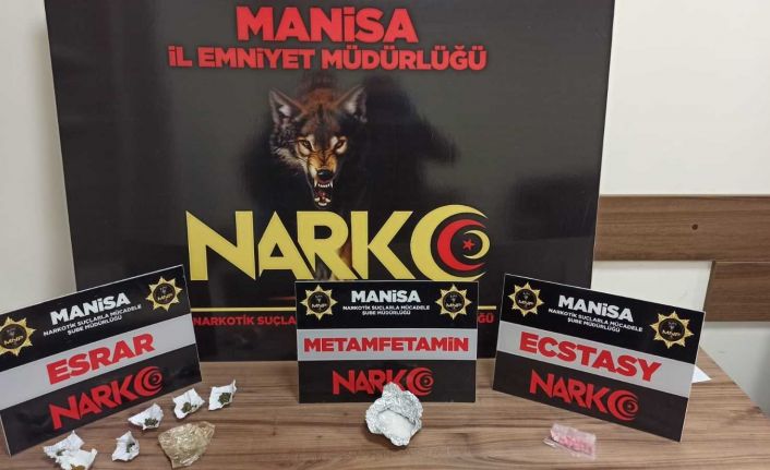 Manisa İl Emniyet Müdürlüğü ekipleri tarafından Yunusemre ilçesinde bulunan uygulama noktasında şüphe üzerine bir araç durduruldu. Araç içerisinde ve araçta bulunan şahıslar üzerinde yapılan aramalarda 51,87 gram metamfetamin maddesi, 29 adet ecstasy adı verilen hap, 7 parça halinde 14,09 gram esrar maddesi ele geçirildi. Araç içerisinde bulunan 4 kişi uyuşturucu veya uyarıcı madde imal ve ticareti yapmak suçundan gözaltına alınarak emniyete götürüldü. Buradaki ifadelerinin ardından adliyeye sevk edilen 4 şüpheliden 3’ü tutuklanarak cezaevine gönderildi.