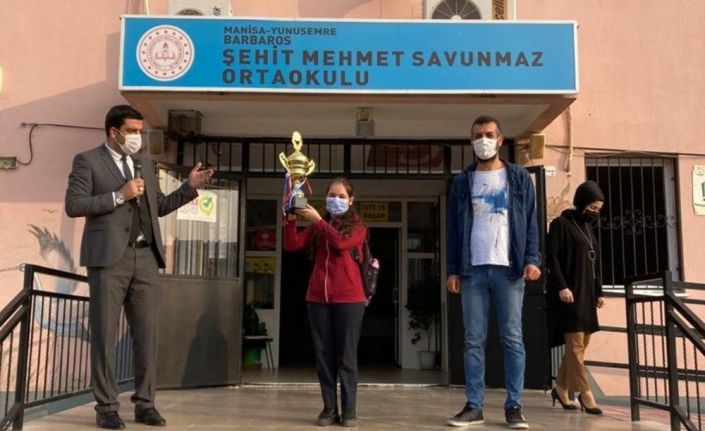 Manisa’nın Yunusemre ilçesi Barbaros Şehit Mehmet Savunmaz Ortaokulu öğrencisi Rahime Nur Bayram da Matematik öğretmeni Gökhan Bozkurt gözetimde hazırlandığı bu yarışmada 90 puanla Türkiye 6’ncısı olarak büyük bir başarıya imza attı.