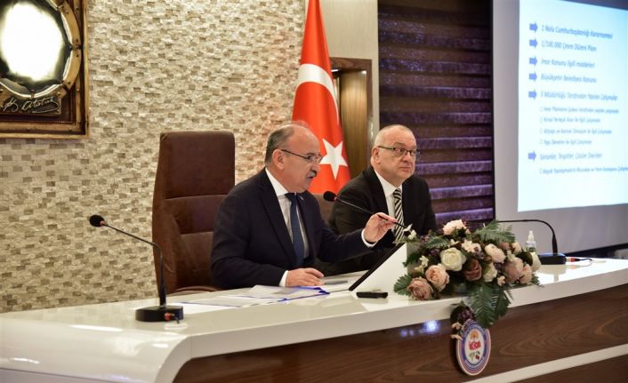 Vali Karadeniz, özel yapıların durumu ile ilgili, "Özel yapılarla ilgili şunu açık ve net buradan ifade etmeliyim ki, kaçak başlamış olan veya ruhsata aykırı bir şekilde yapımı devam eden içine yerleşilmemiş yapıların devamına asla ve asla müsaade etmememiz gerekiyor. Bu konuda özellikle ilçe belediyelerimize önemli görevler düştüğü kanaatindeyim" diye konuştu.
