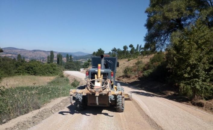 Manisa Büyükşehir Belediyesi, Gördes ilçesi Beğel-Dutluca Mahalleri gurup yolu ile Yunusemre ilçesine bağlı Maldan ve Süngüllü Mahallesi’nde sathi kaplama çalışması öncesi, temel malzeme serimi gerçekleştiriyor.