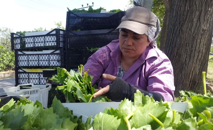 Manisalı üzüm üreticileri üzüm öncesi taze bağ yapraklarını toplayarak gelir elde etmeye başladı. Sarıgöl’de sabah erken saatlerde toplanmaya başlayan taze bağ yapraklarını tüccarlara satan kadınlar aile ekonomilerine de büyük katkı sağlıyor.