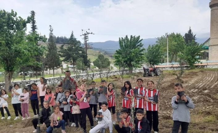 Manisa’nın Sarıgöl ilçesinin Sığırtmaçlı ilkokulu bahçesine öğretmen ve öğrencilerle birlikte Tirilye türü zeytin dikimi yaptı.