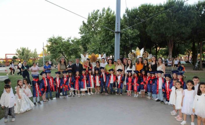 Manisa Büyükşehir Belediyesi Atatürk Kent Parkı Kreş ve Gündüz Bakımevinde eğitim gören minik öğrenciler, 2022-2023 eğitim-öğretim döneminde mezuniyet heyecanı yaşadı. Sergiledikleri dans gösterileri ile büyük beğeni toplayan minik öğrenciler törenin sonunda kep atarak mezun oldu.