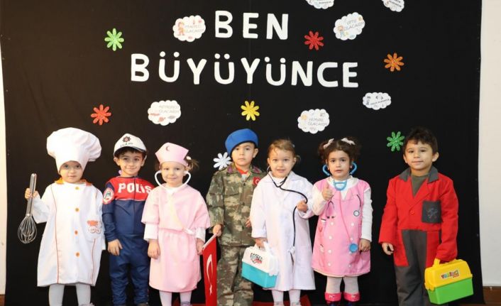 Şehzadeler Belediyesi Erler Kreşi Uçan Balonlar Sınıfı öğrencileri, anlamlı bir drama etkinliğine imza attı. “Biz Büyüyünce” adıyla düzenlenen etkinlikte minikler, hayallerindeki mesleklerin kostümlerini giyerek sahne aldı.