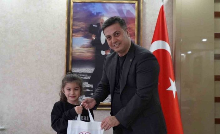 İl Müdürü Yunus Öztürk, Deniz Erol’u; babası Ömer Faruk Erol, annesi Seda Solmaz Erol ve öğretmeni İpek Alpakın ile birlikte kabul etti.
