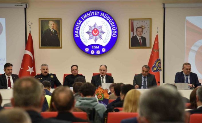 Manisa’da eğitim-öğretimin huzur ve güven içerisinde sürdürülebilmesi, öğrencilerin okul çevrelerinde maruz kalabilecekleri her türlü olumsuzluğun önlenmesi ve trafik güvenliğinin artırılmasına ilişkin tedbirler, Vali Vahdettin Özkan başkanlığında gerçekleştirilen 2024-2025 Eğitim-Öğretim Yılı İkinci Dönem Güvenlik Tedbirleri Toplantısında değerlendirildi.