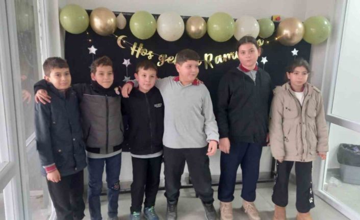 Okul salonunda hazırlanan ve üzerinde "Hoş Geldin Ramazan" yazısının yer aldığı pano, balonlarla süslendi. Öğrenciler ve öğretmenler, hazırlanan Ramazan Köşesi önünde hatıra fotoğrafı çektirdi.