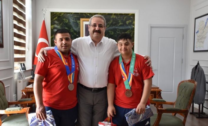 İlçe Milli Eğitim Müdürü Mahmut Yenen ve Koordinatör Öğretmen Hasan Çiçek’in eşlik ettiği ziyarette Kaymakam Sağlam, özel sporcuları başarılarından dolayı tebrik etti. Özel sporcuları ödüllendiren Kaymakam Sağlam, bundan sonra katılacakları müsabakalarda başarılarının devamını diledi.