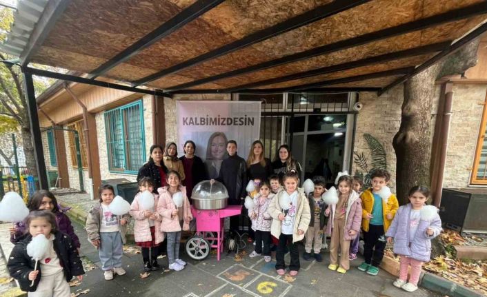 Yunusemre Belediyesi Kaynak Anaokulu öğretmenleri, merhum Manisa Büyükşehir Belediye Başkanı Ferdi Zeyrek ve merhume Şehzadeler Belediye Başkanı Gülşah Durbay’ı dualarla anarak, çocuklara okul önünde pamuk şeker hayrında bulundu.