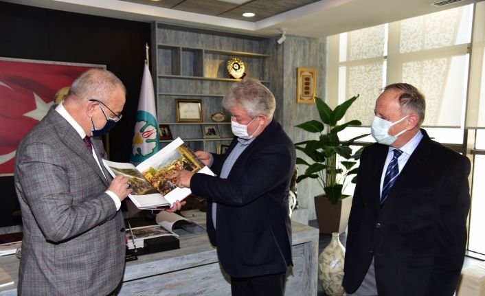Manisa Büyükşehir Belediye Başkanı Cengiz Ergün, Rus Devlet Sanatçısı Aleksander Samsonov’u makamında konuk etti. Ziyarette Manisa Büyükşehir Belediye Başkan Danışmanı Azmi Açıkdil’de yer alırken, Samsanov Başkan Ergün’e imzaladığı kitabı hediye etti.