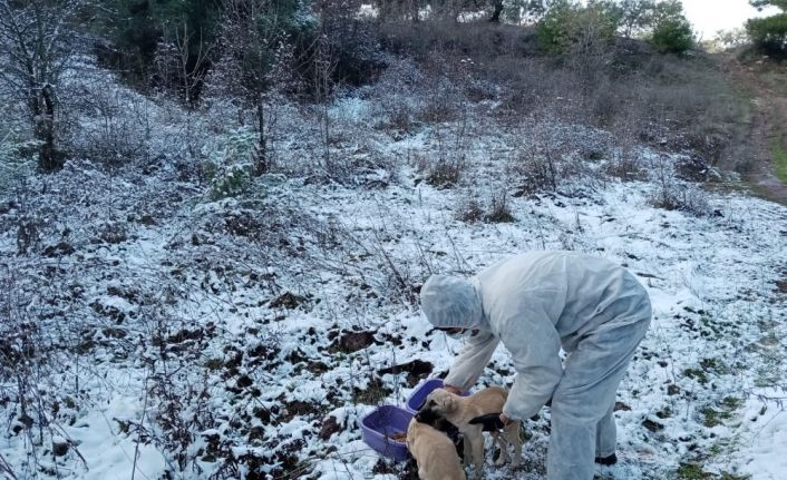 Salihli Belediyesi karlı havada sokak hayvanlarını unutmadı