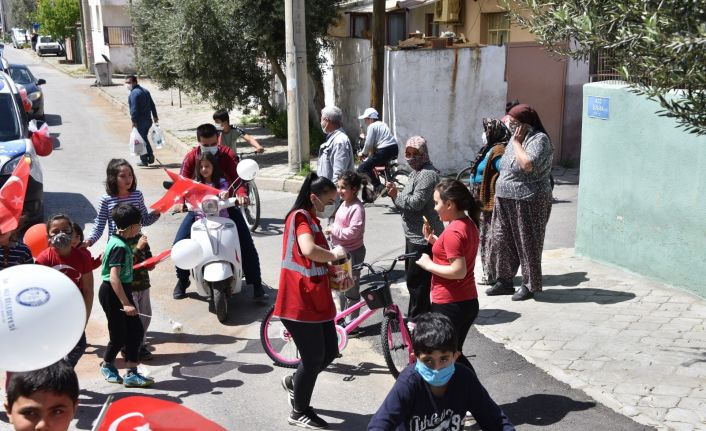 23 Nisan’da evde kalan Salihlili çocuklar, bayram coşkusundan mahrum kalmadı. Salihli Belediyesi Sosyal Yardım İşleri Müdürlüğü ekipleri, evlerini ve balkonları süsleyen miniklere bayram sevincini yaşattı.