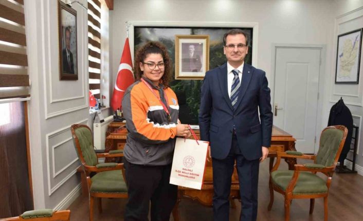 Kaymakam Ali Güldoğan, elde ettiği büyük başarıdan dolayı genç sporcuyu tebrik ederek, eğitim ve spor hayatında başarılarının devamını diledi. Güldoğan ayrıca, öğrencinin yetişmesinde emeği geçen idareci ve antrenörlere de teşekkür etti.