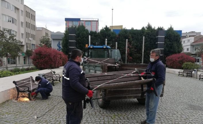 Salihli’de meydanlardaki banklar söküldü