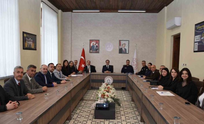 Kaymakam Güldoğan başkanlığındaki toplantıya, Cumhuriyet Başsavcısı Orhan Al, İlçe Jandarma Komutanı Binbaşı Doğukan Karaaslan, İlçe Emniyet Müdür Vekili Özgür Kılınç ile kurum temsilcileri katıldı.