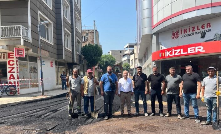 Salihli Belediyesi ekipleri, Yıldız Meydanı çevresinde kavşak düzenleme çalışmaları yaparak yollara sıcak asfalt attı.