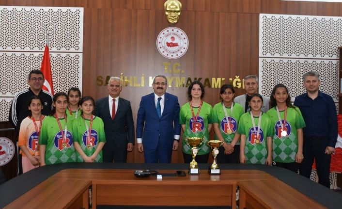 Çanakkale’de düzenlenen grup müsabakalarında şampiyon olarak yarı finale yükselen Salihli Yılmaz Şehit Hüseyin Arı Ortaokulu Yıldız Kız Futsal Takımı sporcuları, Salihli Kaymakamı Mehmet Kamil Sağlam’ı ziyaret etti.