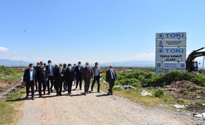 Manisa’nın Şehzadeler ilçesine bağlı Sancaklıbozköy Mahallesi’nde yapılacak 400 konutluk TOKİ projesi için yüklenici firma alanda şantiye kurulumuna başlarken; Şehzadeler Belediye Başkanı Ömer Faruk Çelik, Manisa Valisi Yaşar Karadeniz ile birlikte bölgede incelemelerde bulundu.