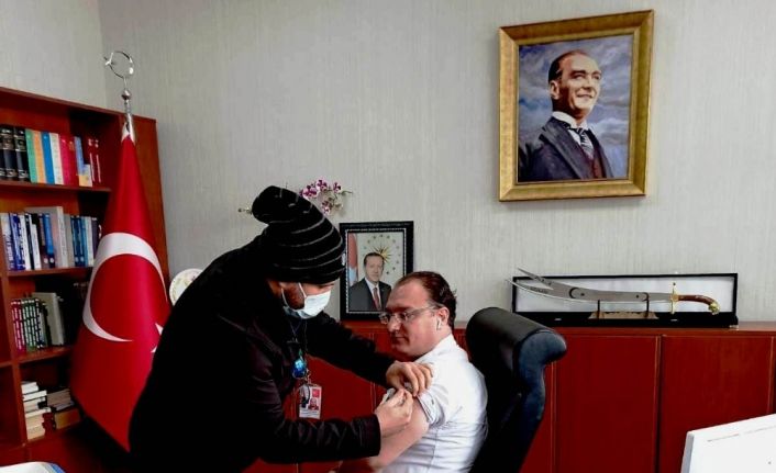 Manisa’nın Sarıgöl ilçesinde Kaymakam Ali Arıkan, korona virüs aşısı oldu.