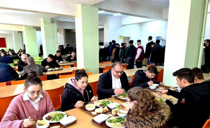 Daha sonra okulun pansiyonun yemekhanesinde öğrencilerle bir araya gelen Kaymakam Arıkan tabldotta öğrencilerle birlikte, öğle yemeği yedi. Öğrencilerle sohbet eden Kaymakam Arıkan, “Devletimiz, öğrencilerimizin daha iyi bir eğitim ve daha iyi bir geleceğe hazırlanmaları için tüm imkanlarını seferber ediyor. Eğitim bizim için her zaman öncelikli bir iştir. Öğrencilerle birlikte yemek yemek beni okul yıllarıma götürdü.” dedi.