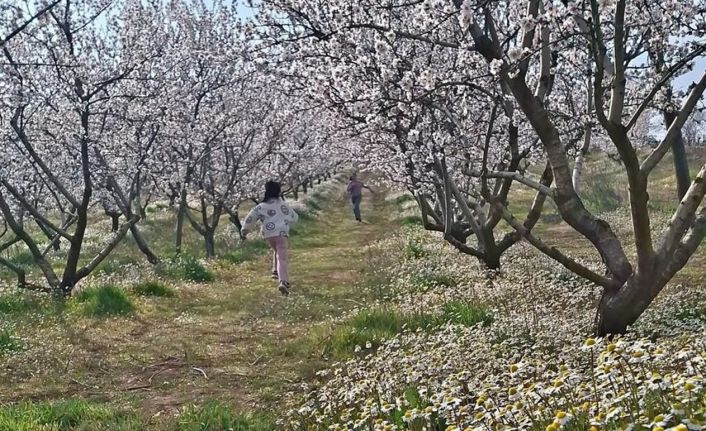 Mahalle sakinlerinden Halil Uygun, yıllar önce İlçe Tarım ve Orman Müdürlüğü tarafından bodur badem fidanlarının bölgeye dikildiğini belirterek, "Yıllar önce İlçe Tarım ve Orman Müdürlüğü tarafından elle kırılabilen bodur badem fidanları dağıtılmıştı. Tarla komşumuz da 5-6 dekarlık tarlasına bu fidanlardan dikmişti. Şimdi tüm badem ağaçları çiçek açtı. Toprak yeşerdi, papatyalar açtı. Ortaya çıkan manzara bizleri dinlendiriyor. Buraya ailece gelip fotoğraflar çekiliyoruz." dedi.