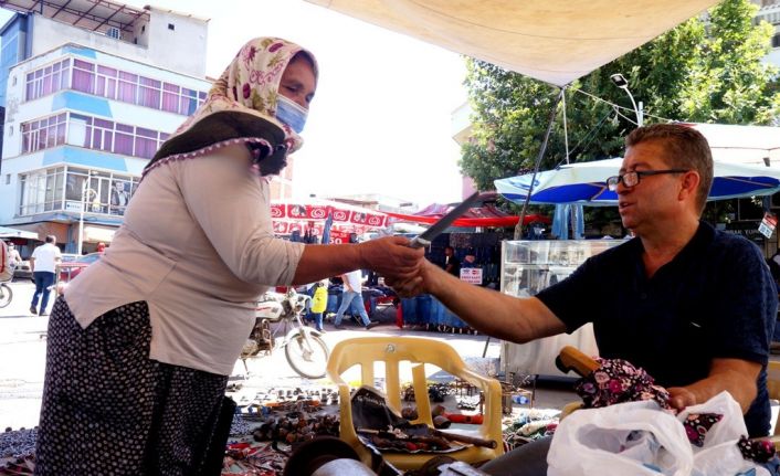 Manisa’nın Sarıgöl ilçesinde yaklaşan Kurban Bayramı dolayısıyla kullanılacak bıçaklar, satırlar ve nacakların bilenmesi için vatandaşlar bıçakçıların önlerinde adeta kuyruk oluşturdu.