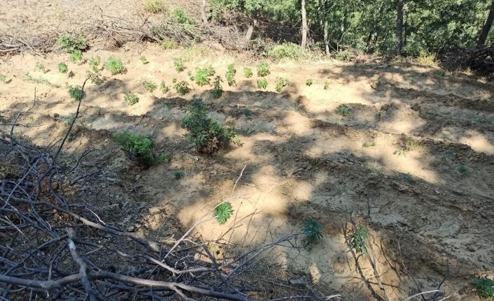Manisa’nın Sarıgöl ilçesinde jandarma ekipleri tarafından ormanlık alanda ekili 60 kök kenevir bitkisi ele geçirildi.
