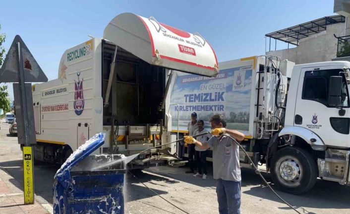 Havaların ısınmasıyla birlikte çalışmalarına hız veren Şehzadeler Belediyesi Temizlik İşleri Müdürlüğü ekipleri, ilçedeki çöp konteynerlerini özel yıkama aracıyla yıkayıp dezenfekte ediyor.