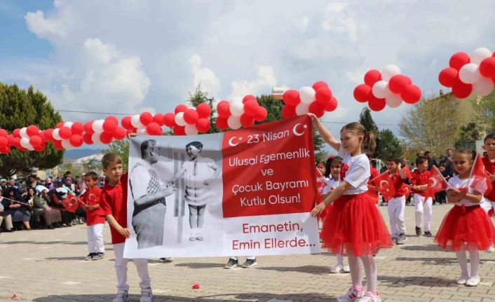 Kutlamalar, Hükümet Konağı önündeki Atatürk büstüne İlçe Milli Eğitim Müdürü Ahmet Ataşman’ın çelenk sunumuyla başladı. Daha Cumhuriyet İlkokulu bahçesindeki kutlamalara geçildi. Burada İlçe Mili Eğitim Ahmet Ataşman, günün anlam ve önemini belirten bir konuşma yaptı. Ataşman, "Türkiye Cumhuriyeti’nin ve yüce milletimizin umudu, neşesi ve güvencesi sevgili çocuklar; bugün milli birlik ve beraberlik duygularıyla coşan ve güçlenen milli iradenin temsil edildiği, TBMM’nin kuruluşu ile milli, çağdaş, laik, demokratik ve egemen yeni Türk devletinin doğuşunun 103’nci yıldönümüdür. Bugünü engin bir şevk ve heyecanla kutlamanın onur ve mutluluğu içindeyiz. 23 Nisan, Türk Milleti’nin emperyalist devletlerin her türlü baskı, zulüm ve işgaline karşı, Gazi Mustafa Kemal Atatürk’ün önderliğinde milli egemenliğimizin hakim kılındığı gündür. Milli varlığımızı yüceltme azim, karar ve heyecanını yüreğimizde duyduğumuz gündür" dedi.