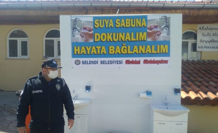 Selendi’de pazar yeri girişine hijyen istasyonu