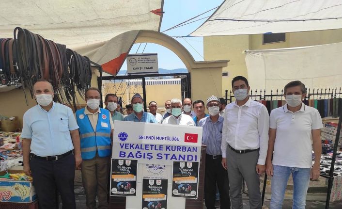 Manisa’nın Selendi ilçesinde Kurban Bayramı dolayısıyla kurbanını vekalet yoluyla kesmek isteyen vatandaşlar için İlçe Müftülüğü tarafından stant açıldı.