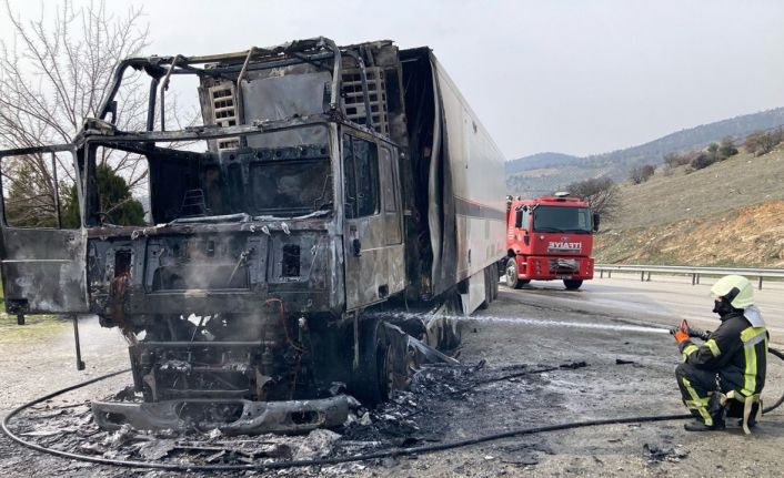 Seyir halindeyken alev alan tır küle döndü