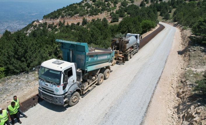 Spil Dağı Milli Parkı’na giden güzergahta, Manisa Büyükşehir Belediyesi yol genişletme ve temel çalışmasının ardından sathi kaplama çalışmasına başladı.