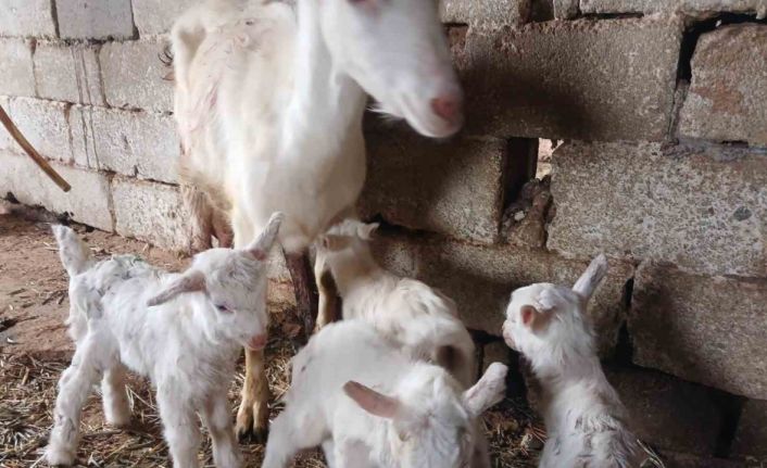 Manisa’nın Sarıgöl ilçesinde süt verimiyle bilinen Saanen keçi, bu kez yaptığı dördüz doğumla yetiştiricisinin yüzünü güldürdü. Sağlıklı dünyaya gelen sevimli yavrular mahallede ilgi odağı oldu.