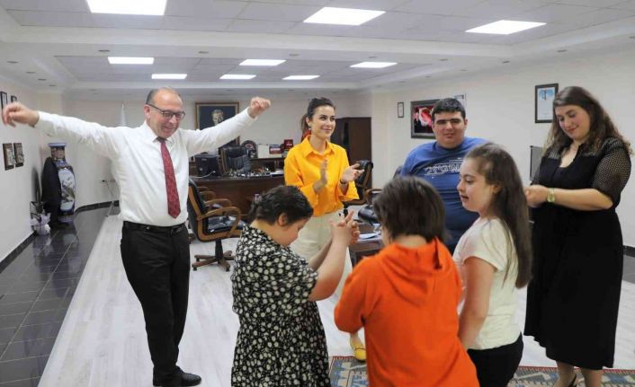 Turgutlu Belediye Başkanı Çetin Akın Firdevs Gürel Eğitim Uygulama Okulu ve İş Eğitim Merkezi öğretmeni ve merkezde eğitim alan öğrencilerini makamında misafir ederek özel öğrencilerle dans etti.