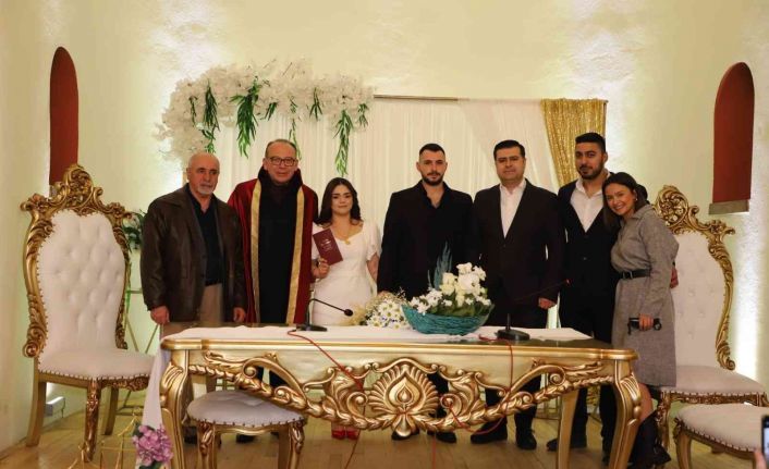 Turgutlu Belediye Başkanı Çetin Akın, Sevgililer Günü’nde evlenen Neriman Yılmaz ile Fatih Aşağıvardar çiftinin heyecan ve mutluluklarına ortak olarak nikah merasimini gerçekleştirdi. Çiftin evlilik cüzdanını ise Turgutlu Belediye Başkan Yardımcısı Fırat Honaz takdim etti.
