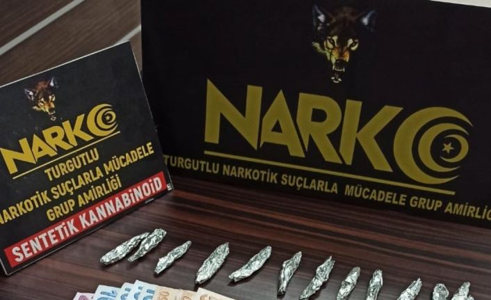Manisa’nın Turgutlu ilçesi genelinde ’Uyuşturucu ticareti yapan, nakleden ve kullanan şahıslara yönelik yapılan çalışmalar neticesinde, İstasyonaltı Mahallesi Sevgi Sokak üzerinde Turgutlu NSM Grup Amirliği ekibince İ.Ö. (38) isimli şüpheli şahıs üzerinde 2 fişek halinde 1.70 gram sentetik kannabinoid maddesi ile yakalandı. Yapılan takip sonucu şahsın uyuşturucu maddeyi temin ettiği tespit edilen H.K. (22) ve S.T. (20) üzerinde toplamda 13 adet fişek halinde 9.61 gram sentetik kannabinoid maddesi ve 1090 TL uyuşturucu satışından elde edildiği düşünülen parayla birlikte ele geçirildi. İki şüpheli şahsa TCK-188’den işlem yapılarak gözaltına alındı. Emniyetteki işlemleri tamamlanarak bugün adli mercilere sevk edilen şüphelilerden H.K., adli kontrol şartı ile serbest bırakılırken, S.T. isimli şüpheli şahıs ise ’Uyuşturucu veya uyarıcı madde ticareti yapmak suçundan tutuklandı.