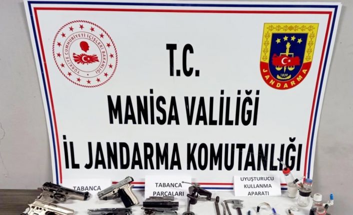 Manisa İl Jandarma Komutanlığı KOM Şube Müdürlüğü ve Yunusemre İlçe Jandarma Komutanlığı ekiplerince uyuşturucu maddeyle mücadeleye yönelik icra edilen operasyonda, M.A isimli şahsın ev ve iş yerinde yapılan aramada; 8 adet ruhsatsız tabanca, 8 adet fişek, 2 adet tabanca gövdesi, 10 adet tabanca namlusu, 10 gram metamfetamin, 10 adet uyuşturucu madde kullanma aparatı, 3 adet sentetik hap ele geçirildi. Bahse konu şahıs gözaltına alınırken, olayla ilgili soruşturma sürüyor.
