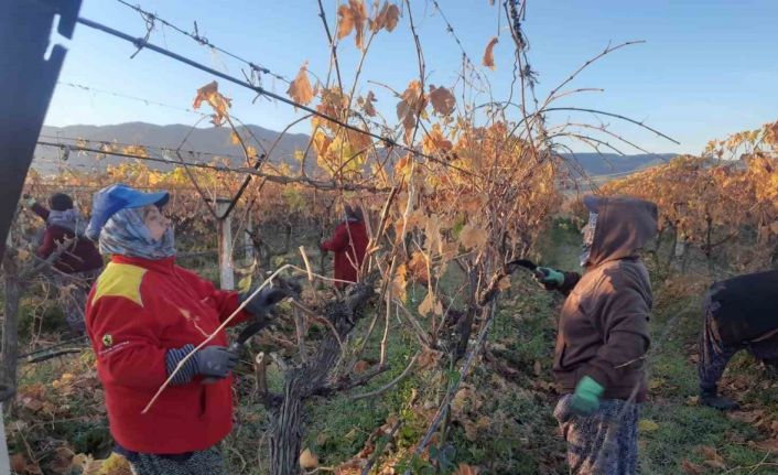 Dayıbaşı Necati Paracı ile birlikte üzüm bağlarına giden kadın işçiler, yenilenecek olan bağlarda asmaların budama işlemlerini yaparak çalışmalara başladı. Uzun yıllardır üretim yapılan ve yaşlanmaya bağlı olarak verim kaybı yaşayan üzüm bağlarında, asmalar köklenmeden önce ana omcadan ayrılıyor.