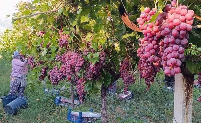 Dünyaca ünlü Sultani çekirdeksiz üzümünün yetiştirildiği Manisa’nın Sarıgöl ilçesinde sofralık Red Globe türü üzüm hasadı başladı.