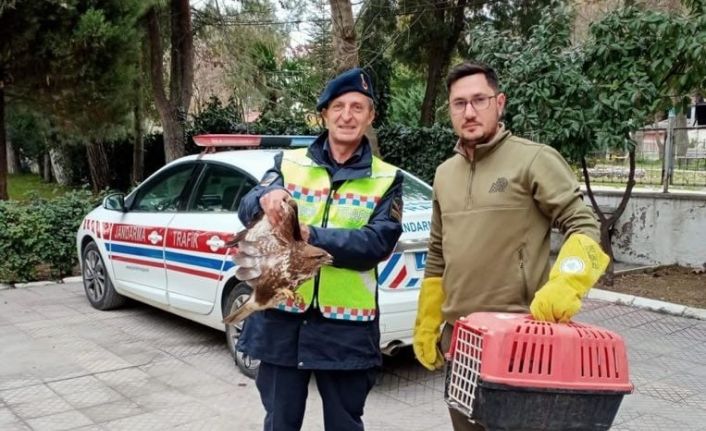 Manisa’nın Saruhanlı İlçe Jandarma Komutanlığı ekiplerince yapılan devriye faaliyeti esnasında, yol kenarında kanadı kırık, yaralı vaziyette yabani şahin bulundu. Ekipler, yaralı şahini tedavisinin yapılması ve doğal yaşam alanına bırakılması için Manisa Milli Parklar Müdürlüğü ekiplerine teslim etti.