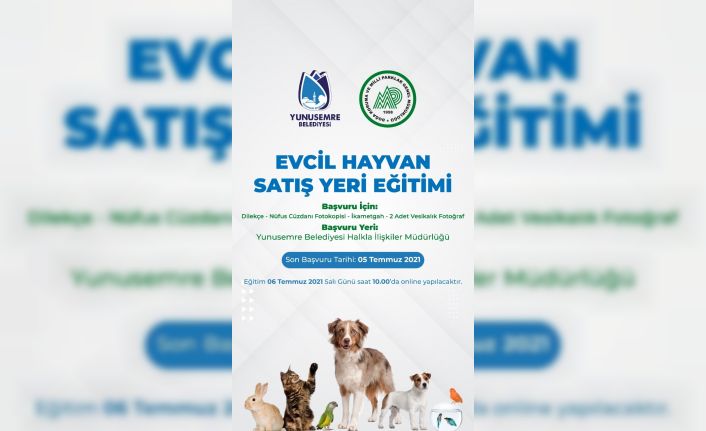Yunusemre Belediyesi öncülüğünde evcil hayvanların satışı yapmak için işyeri açmak isteyen vatandaşlara yönelik eğitim verilecek.