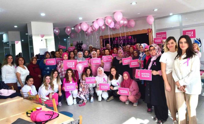 Yunusemre Belediyesi Yenimahalle Hanımlar Lokali Spor Salonu kursiyeleri, meme kanserine farkındalık etkinliği düzenledi.