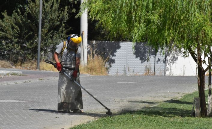 Yunusemre Belediyesi ekipleri, Muradiye Mahallesi Cumhuriyet Caddesi üzerindeki yeşil alanlarda çim biçme ve bakım çalışması yaptı.
