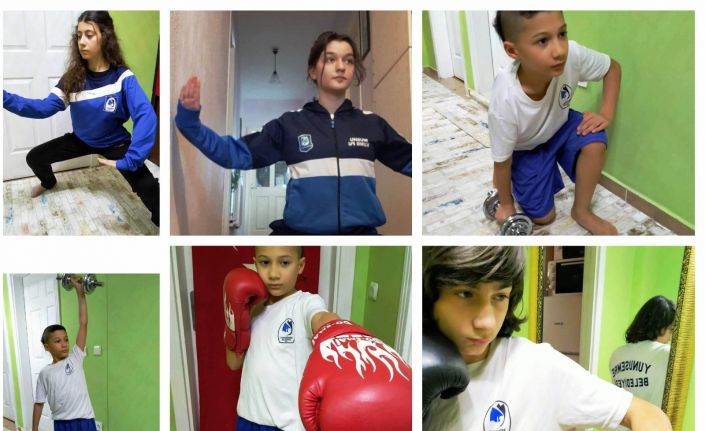 Yunusemre Belediyespor wushu kung fu sporcuları, korona virüs önlemleri kapsamında antrenmanlarına evde devam ediyor.